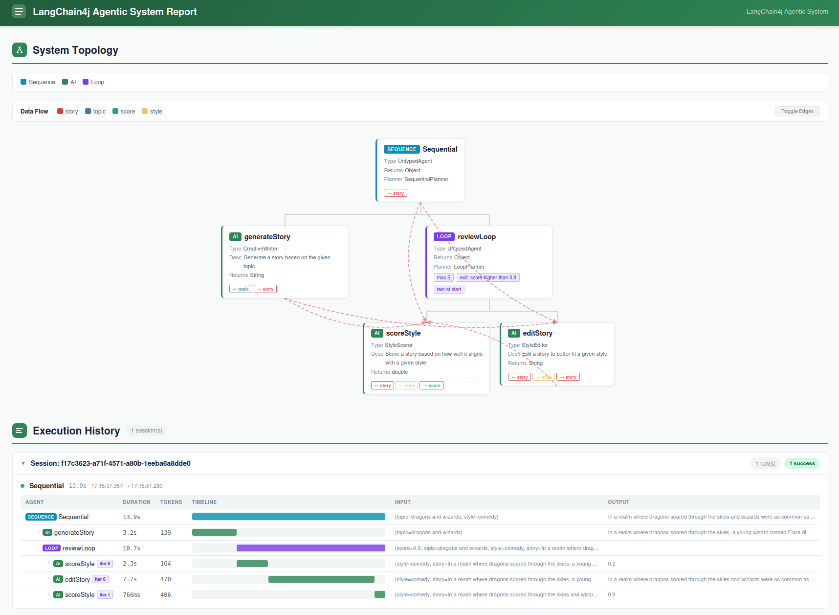 Then it is possible to use this agent in a loop with the StyleEditor one to iteratively improve the story until the score reaches a certain threshold, like 0.8, or until a maximum number of iterations is reached.
